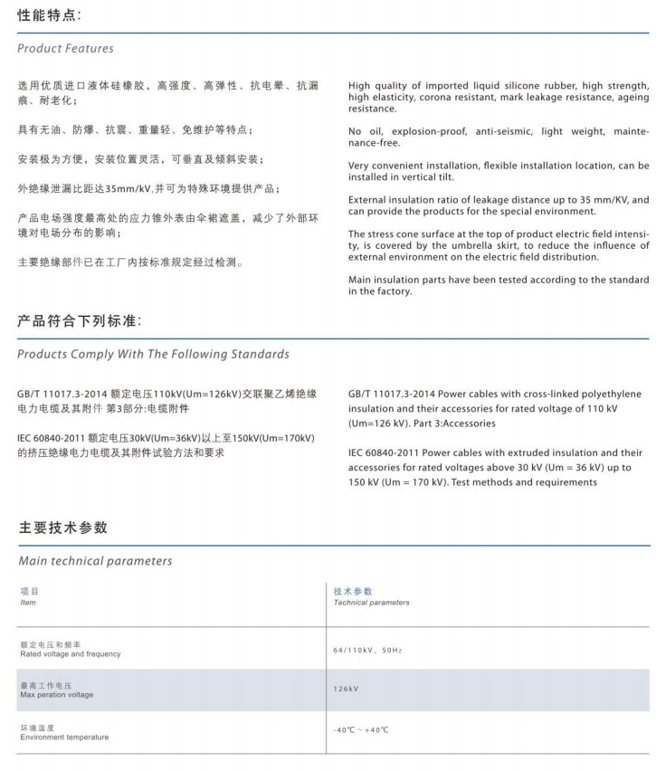 66~110kV整体预制干式户外终端
